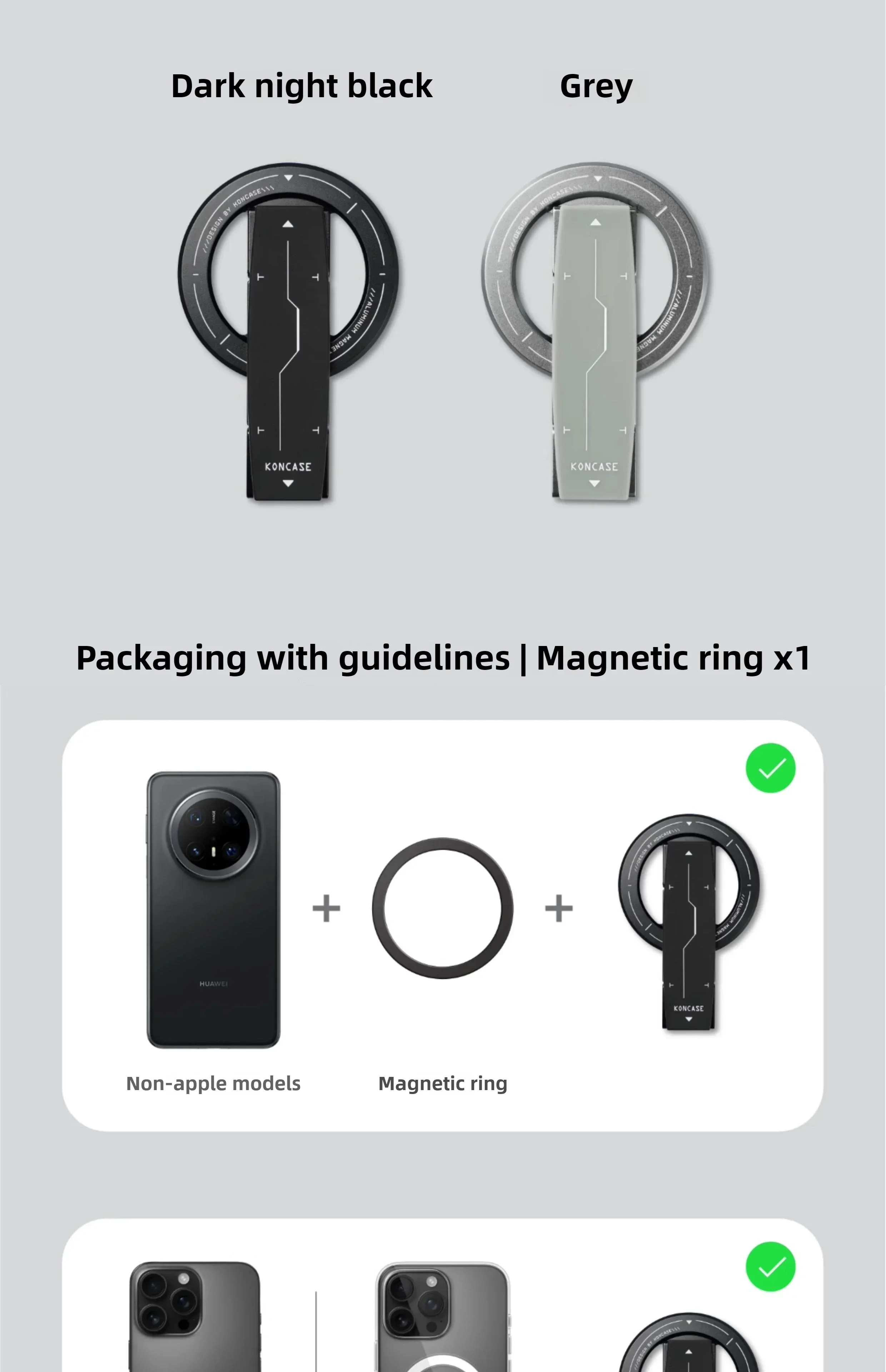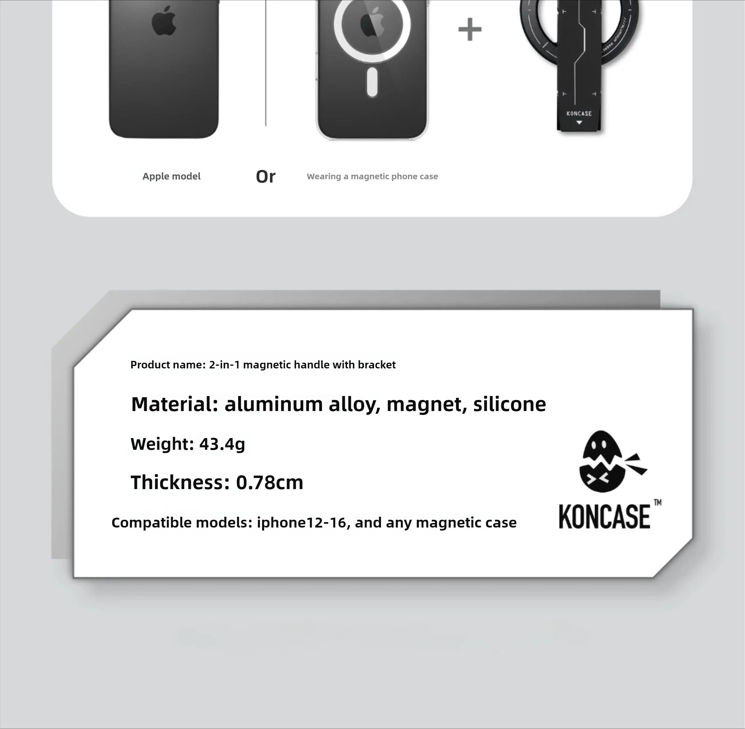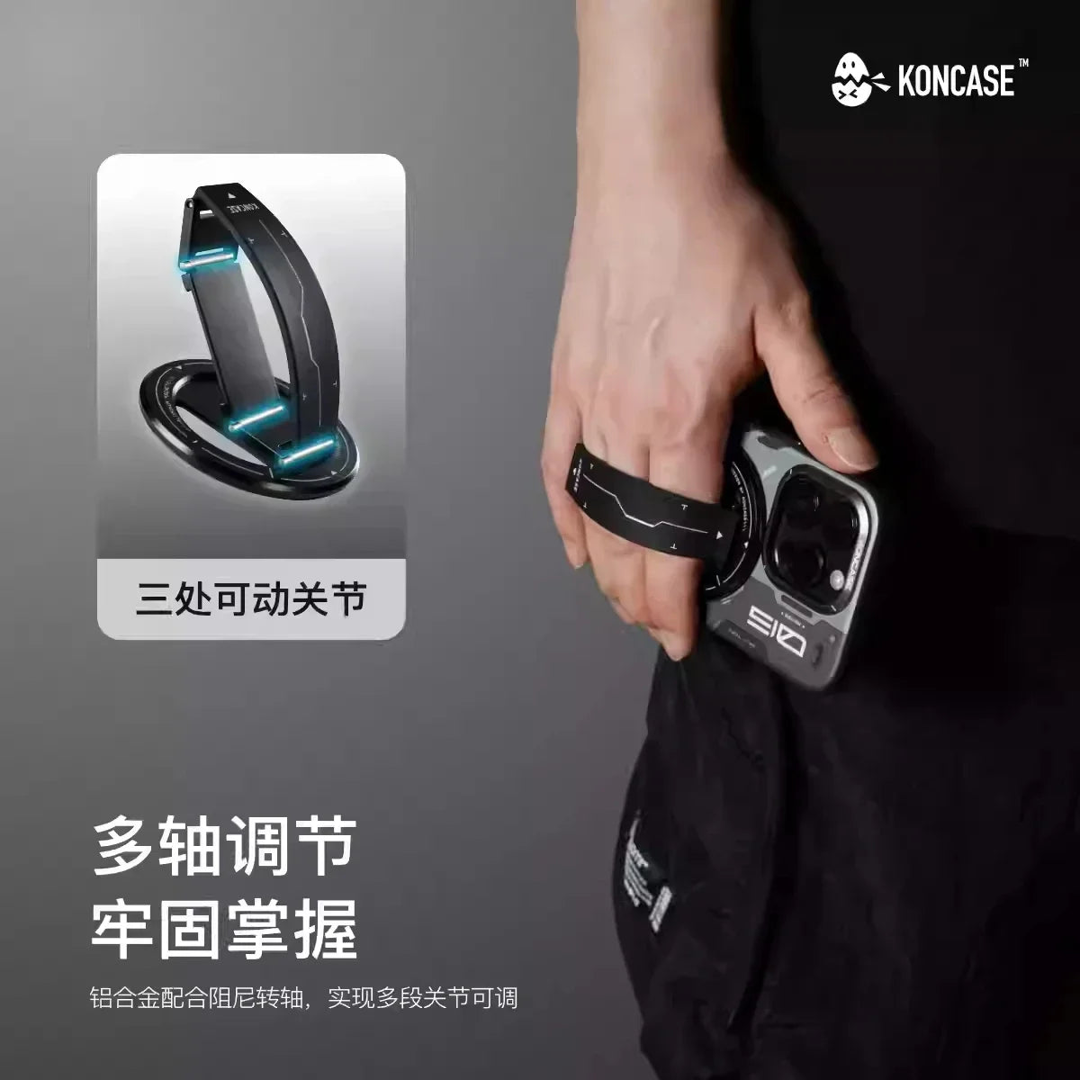 Soporte magnético para teléfono KONCASE 2 en 1 MagSafe 360 ° Accesorio para teléfono con soporte ajustable multifuncional de aleación de aluminio ultrafino