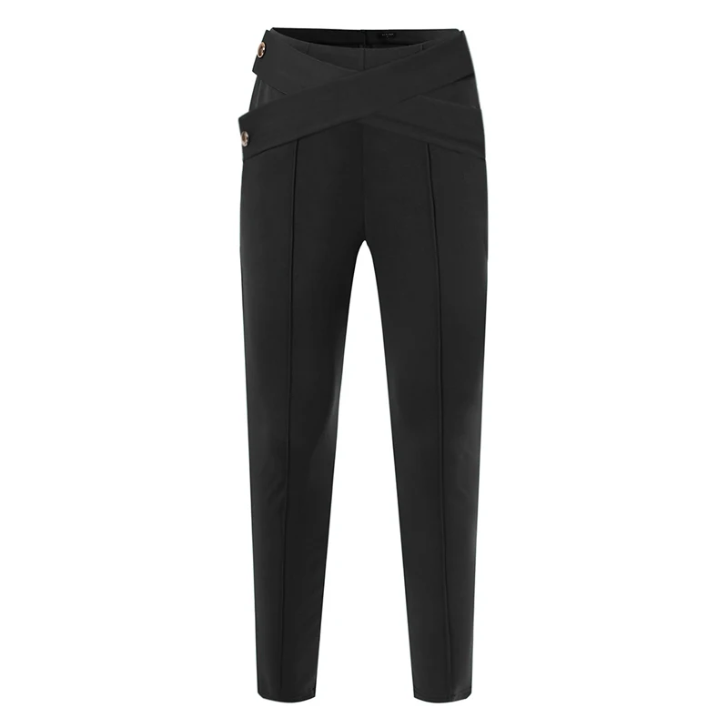 VONDA-Pantalones largos elegantes para mujer, calzas ajustadas de Color liso para oficina, informales, con botones y cremallera, 2024